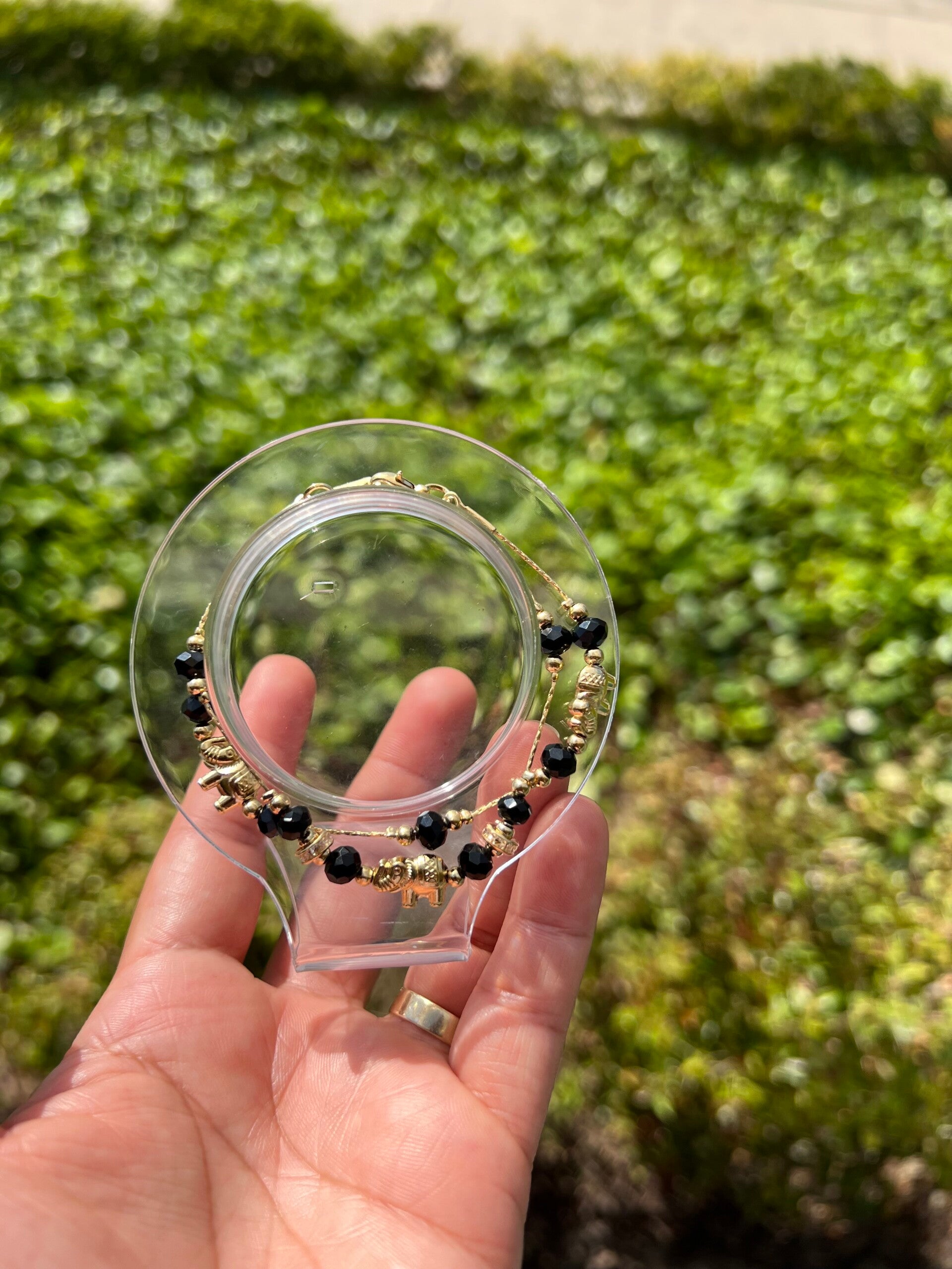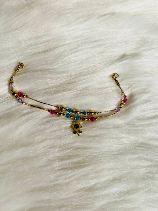 💕Hermosa pulcera de doble caída , con cristal , echo ha mano 💕Oro Laminado .
