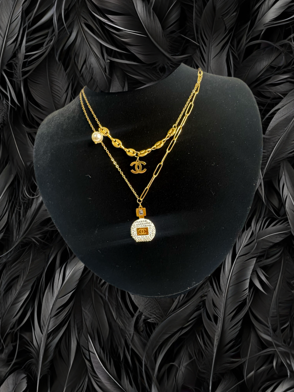 Hermosa gargantilla de doble caída CC, Oro Lamination.