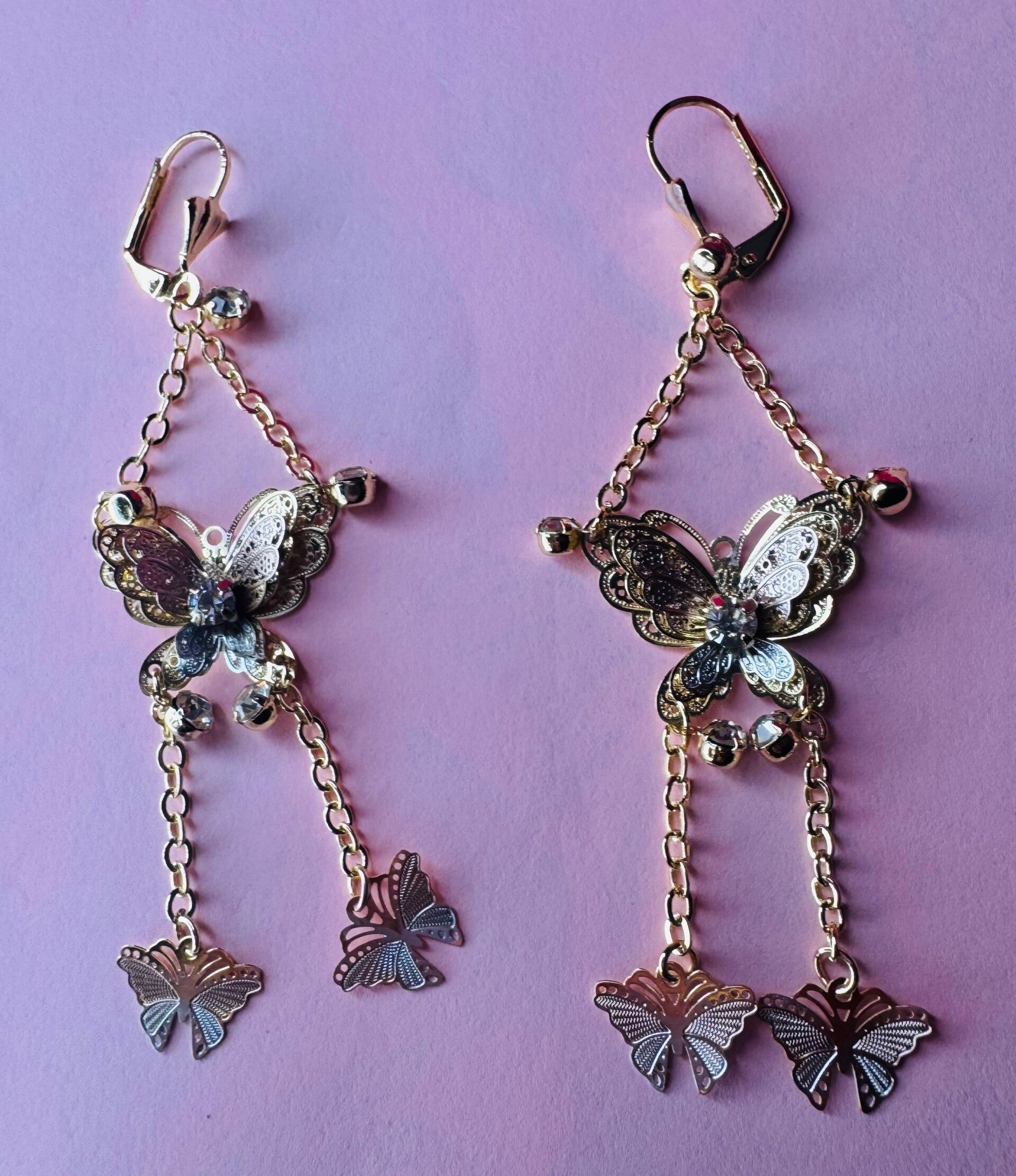 🦋Aretes largos de mariposa en 3 tonos Oro Laminado.