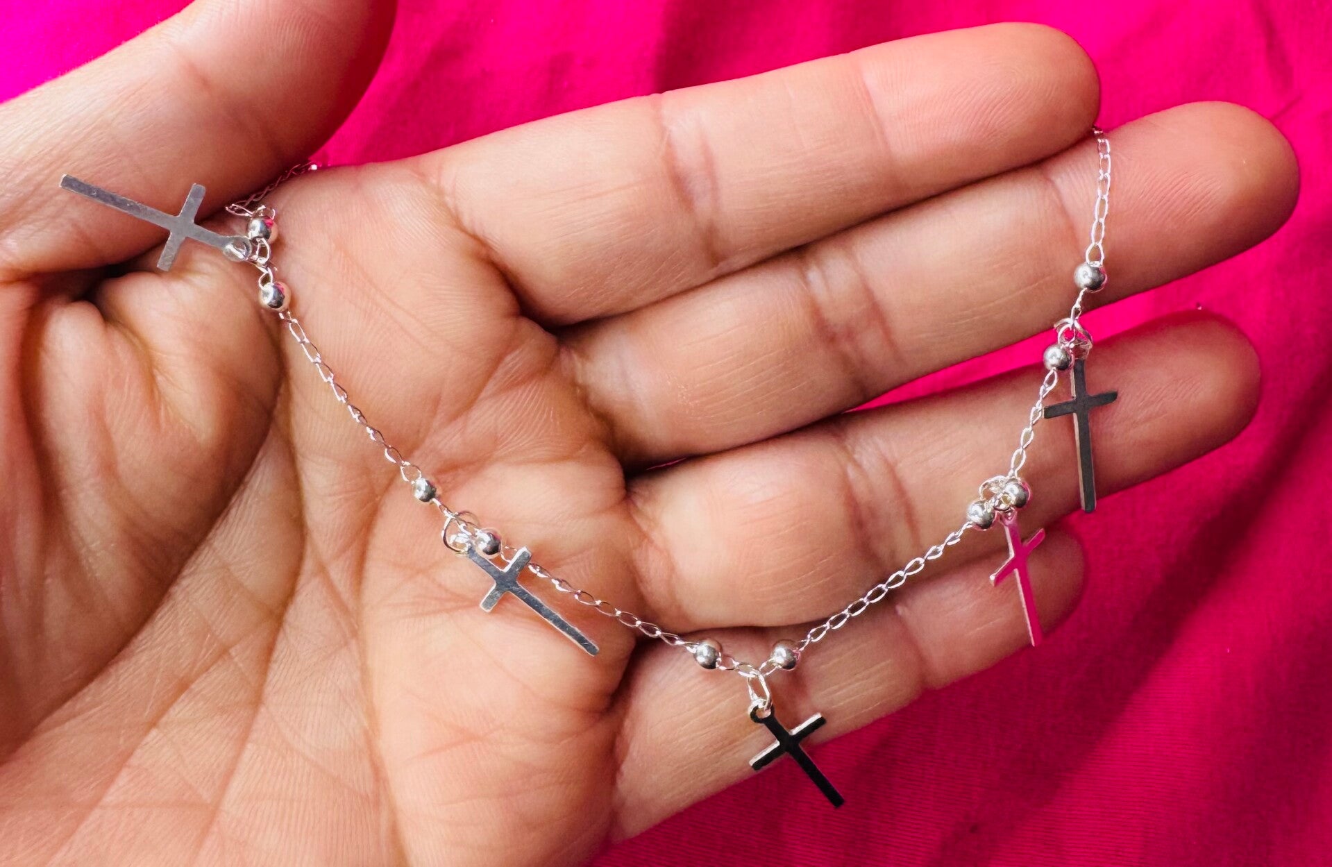 Pulsera con colgantes de cruz en plata 925, 7in -8 in