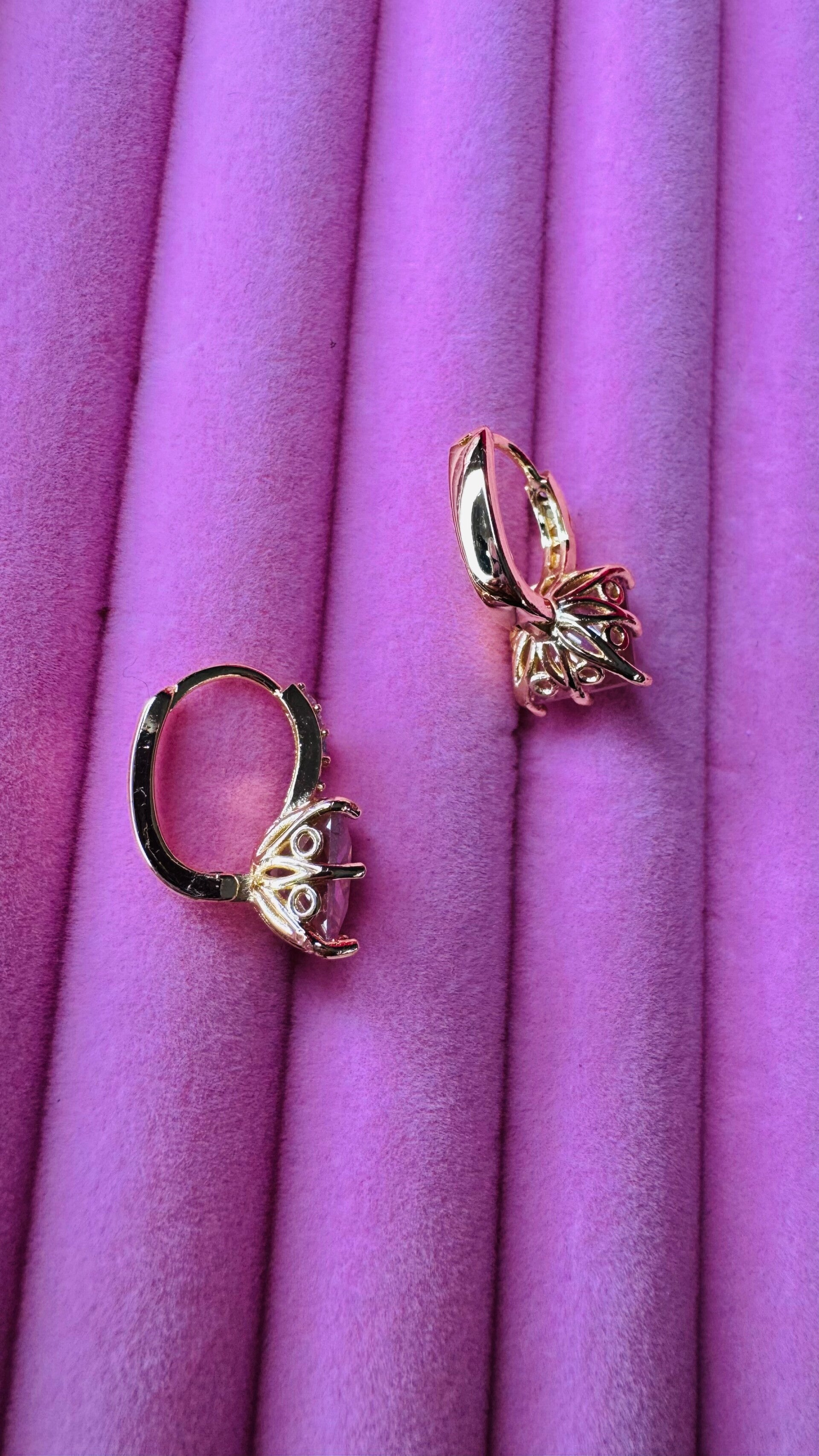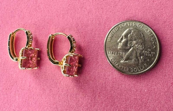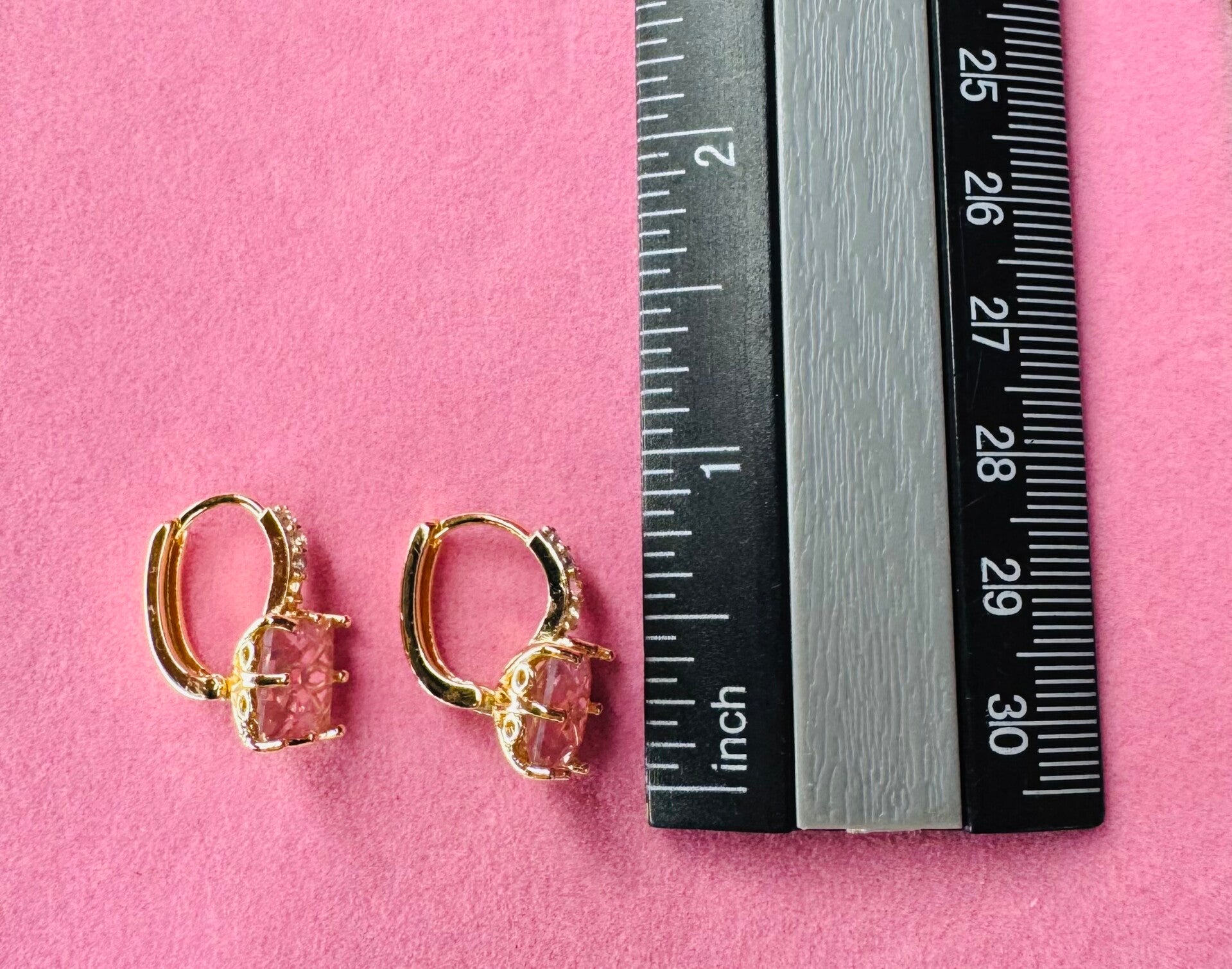 Hermosas arracadas con piedra rosa , en Oro Laminado . Beautiful pink huggies- earrings in gold filled