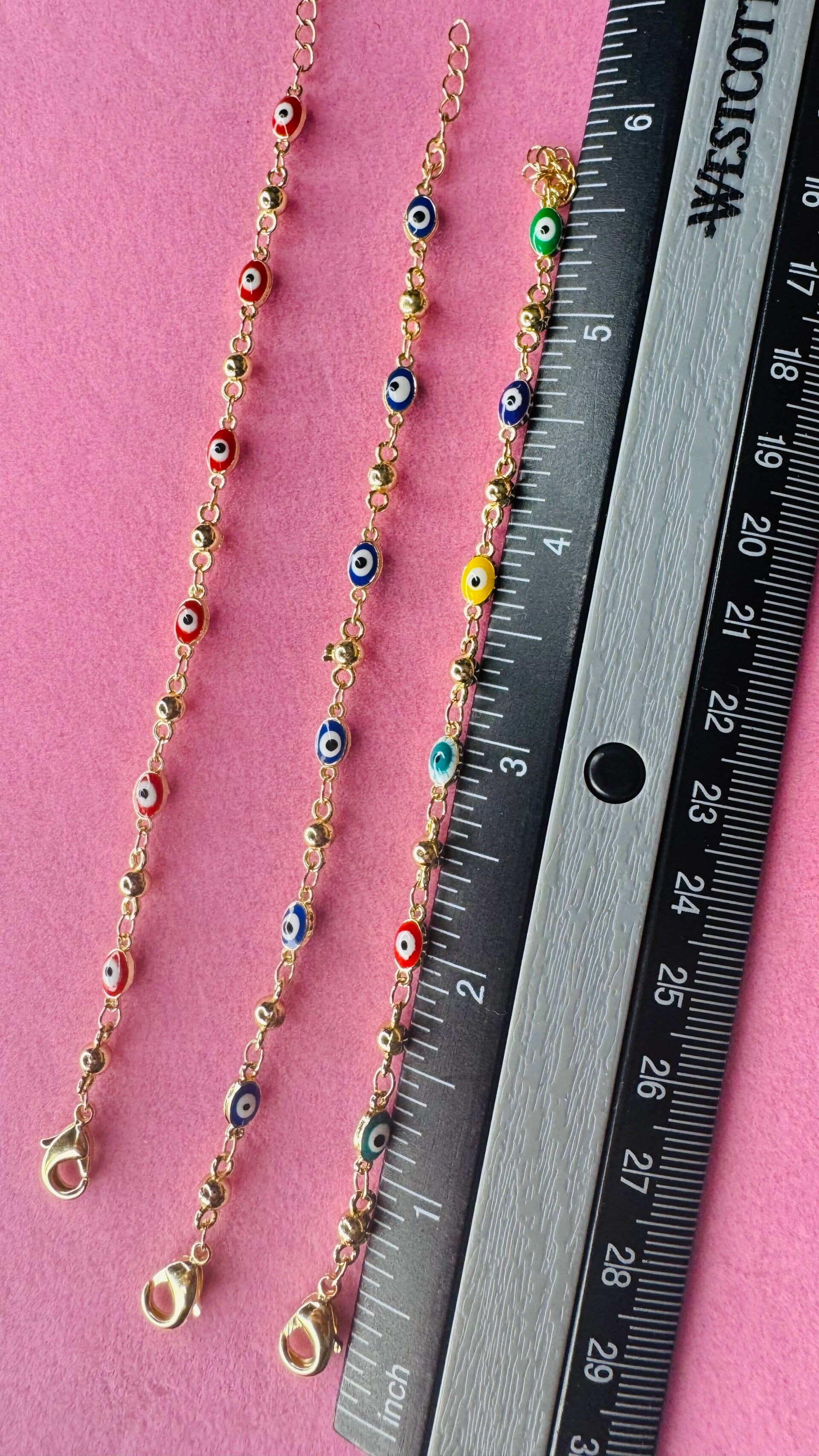 Hermosas pulseras de ojo turco , protección para niñas (o) en Oro Laminado .