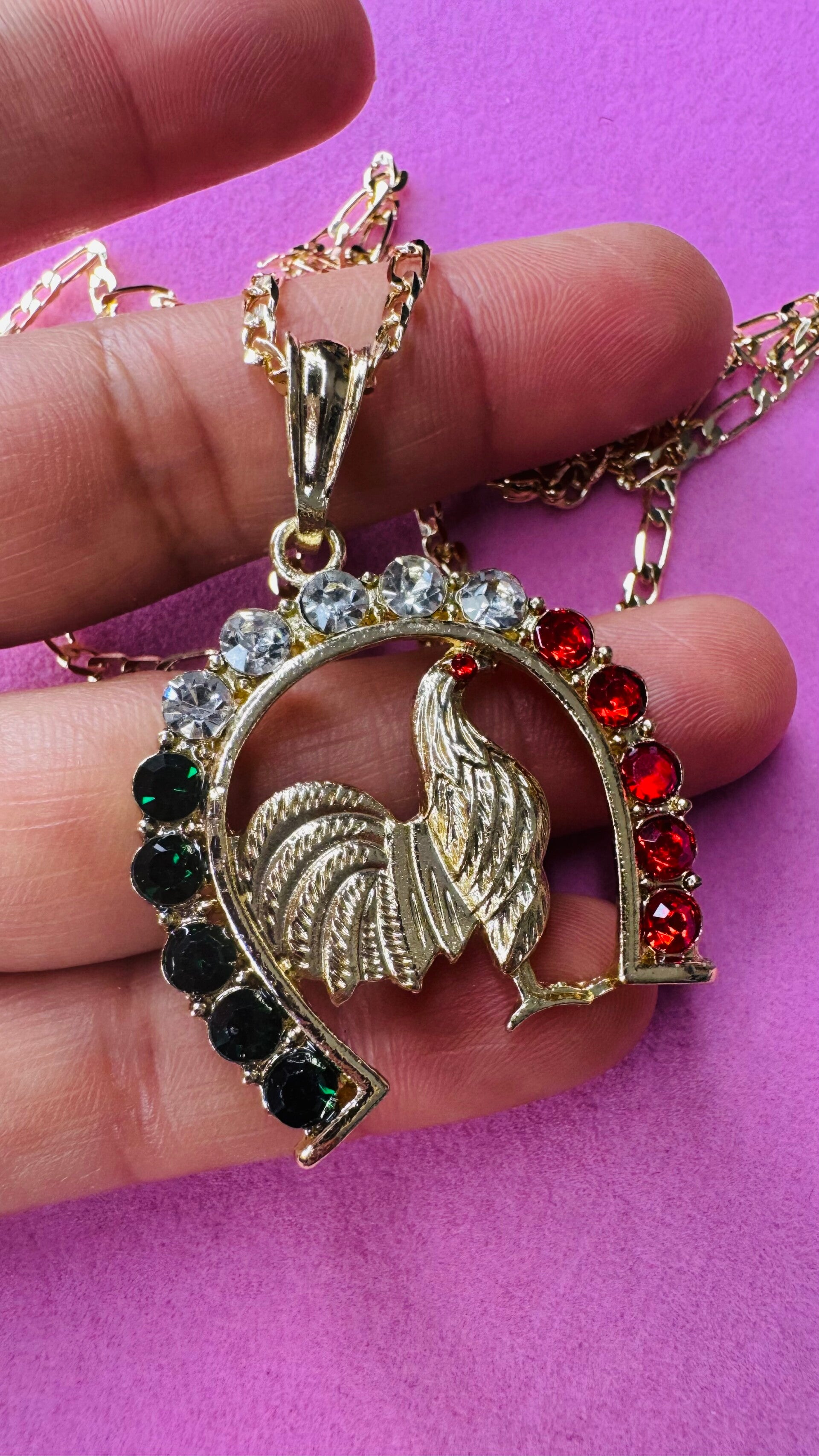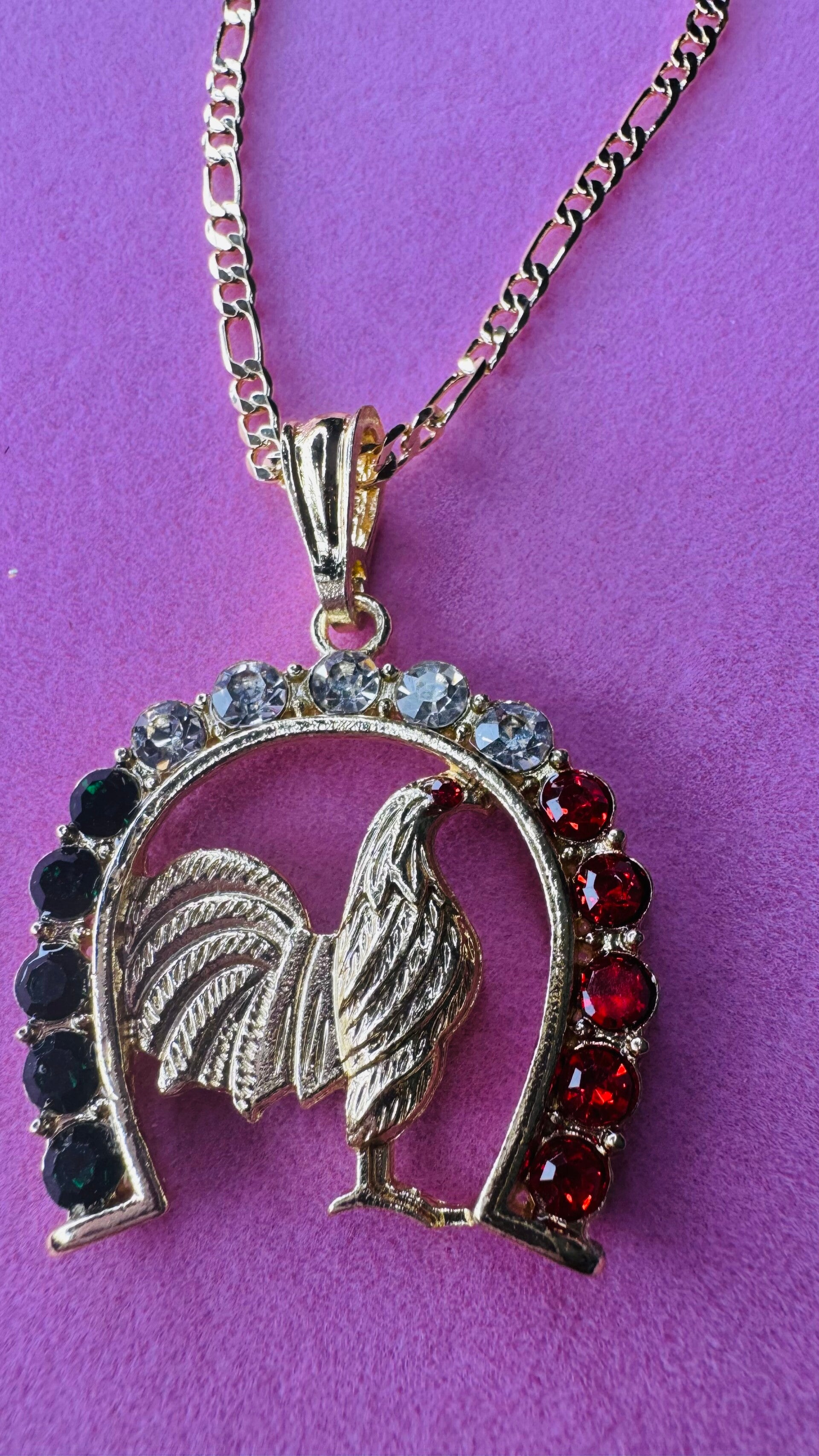 ✨Cadena con dije de Erradura y 🐓 en Oro Laminado ,cadena medida 20in, puede elegir cambiar la medida solo deje mensaje por favor. Medidas disponibles :18,20,22,24 in.Estilo de cadena depende de medida elejida 💕