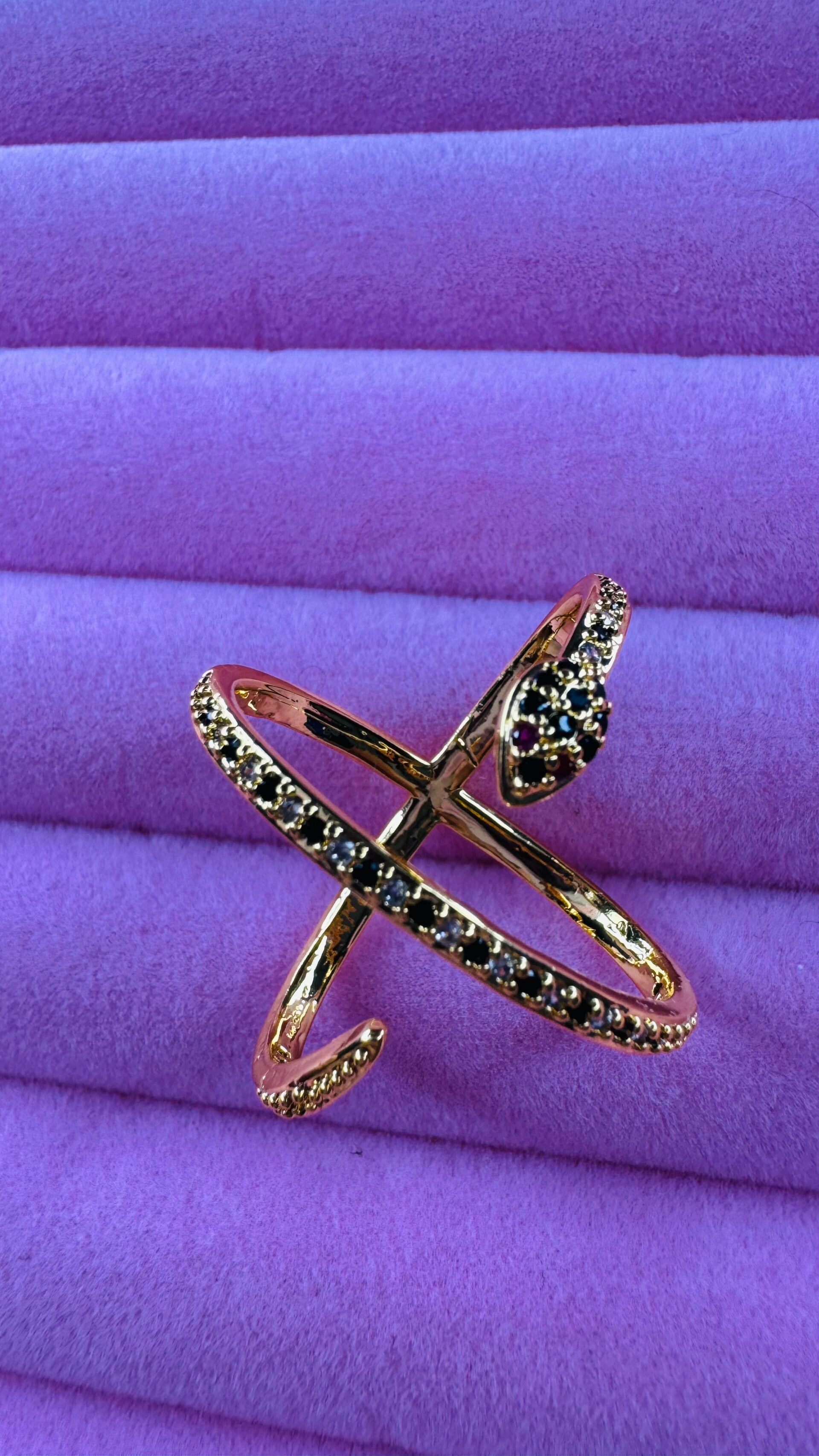 Hermoso anillo cruzado de serpiente en Oro Laminado .