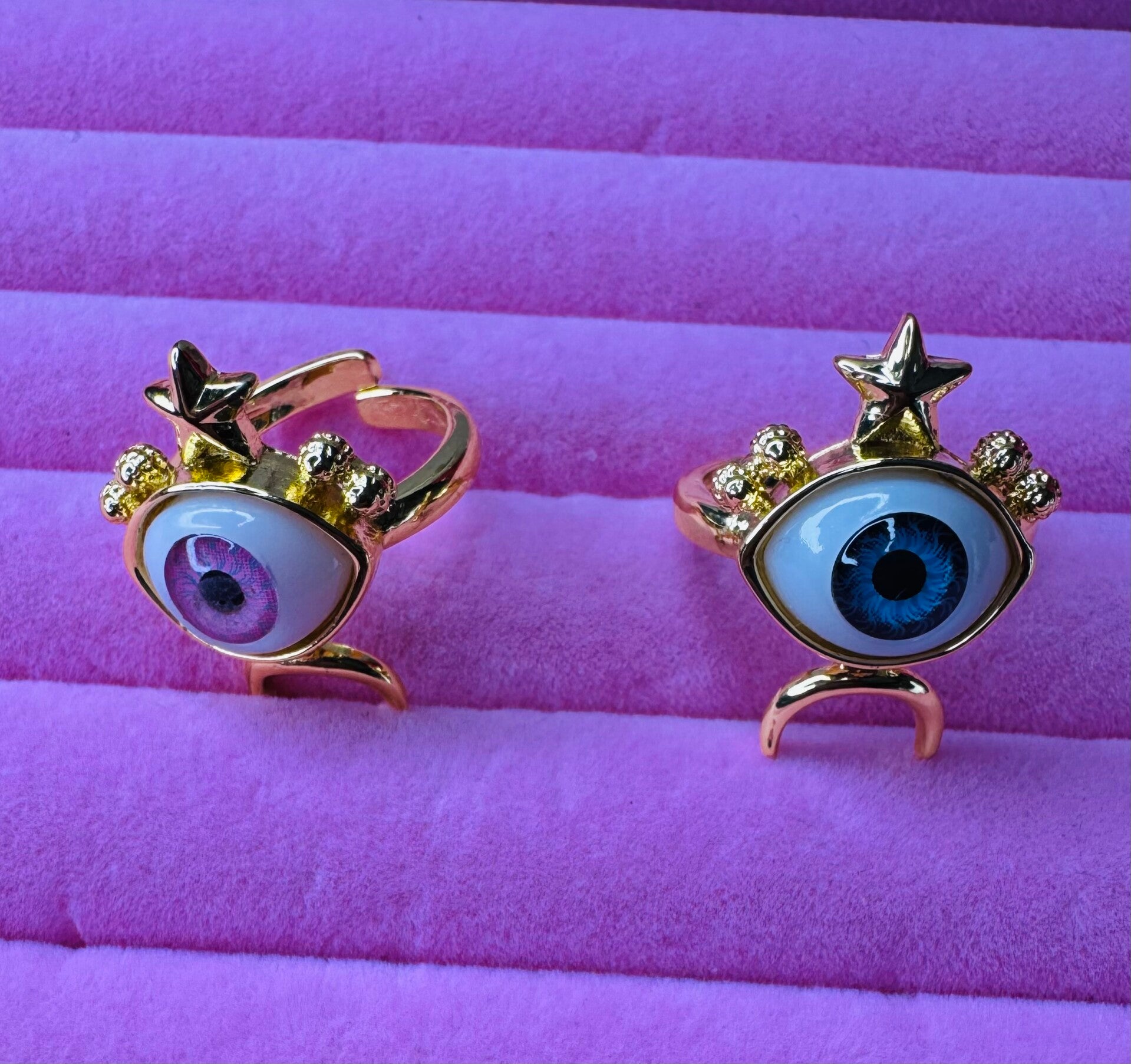 Anillo ajustable de Ojo turco en Oro Laminado.