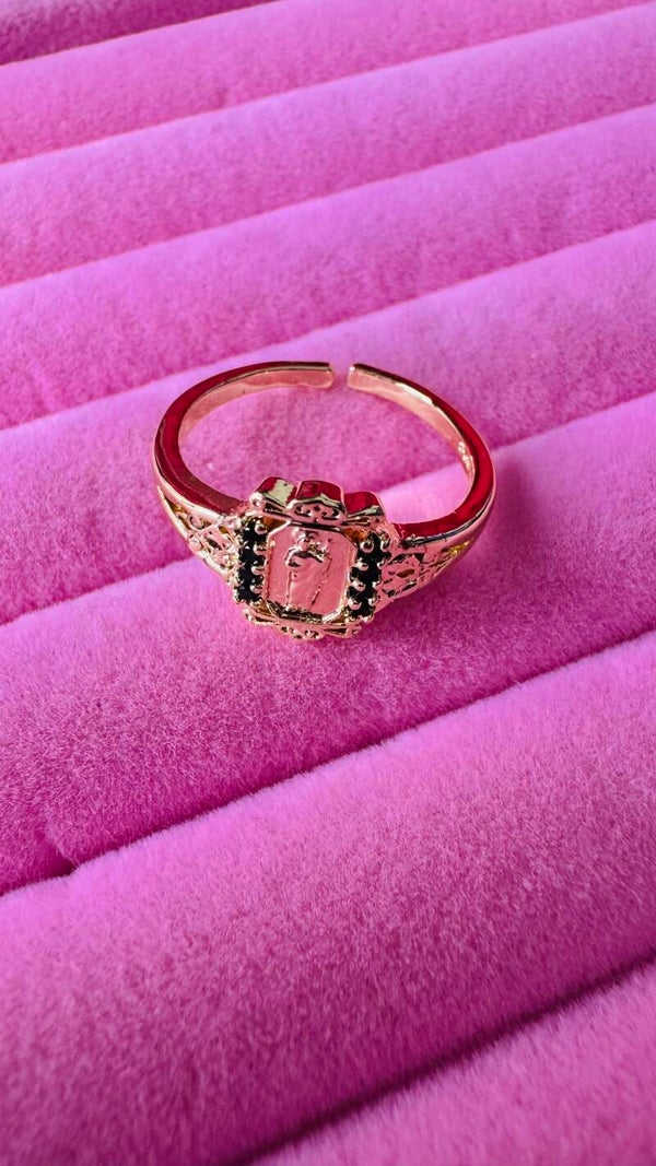 Anillo ajustable en Oro Laminado . Abre por la parte de atrás . Se ajusta ha medida 5-9